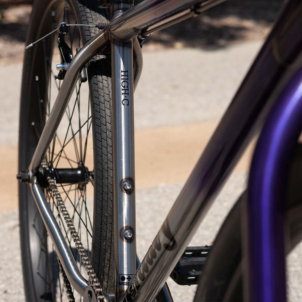 Whether it’s cruising all day, jumping curbcuts, or wheelie-ing around, this bike is intended to handle it all. The frame has a unique shortened rear-end geometry compared to most bikes on the market of this size to make it easier to handle and manipulate in tough positions. It’s also equipped with a quick release seat clamp to make changing up your riding style a breeze.
